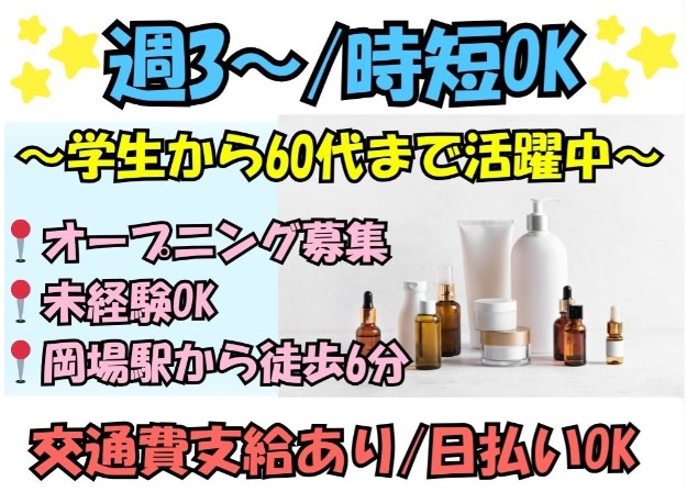 - 【✨オープニング募集✨】化粧品など雑貨類のピッキング♪週3~×時短OK!