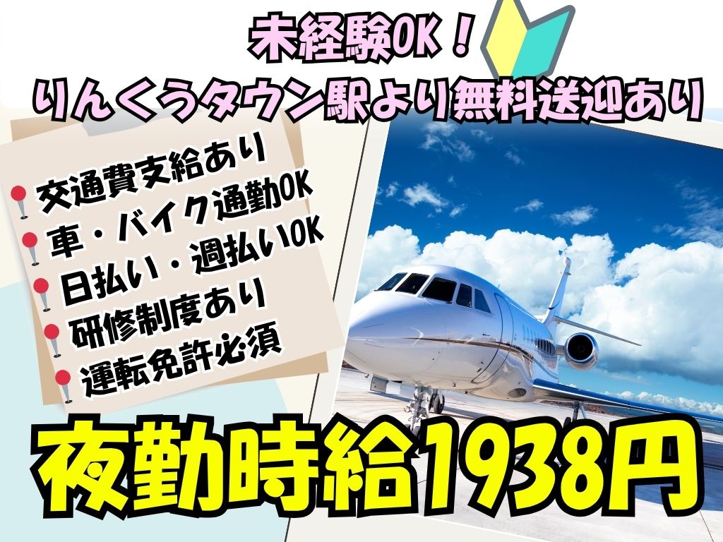 - 【✨夜勤時給1938円✨】手荷物仕分け・搬送♪りんくうタウン駅から送迎あり🚃