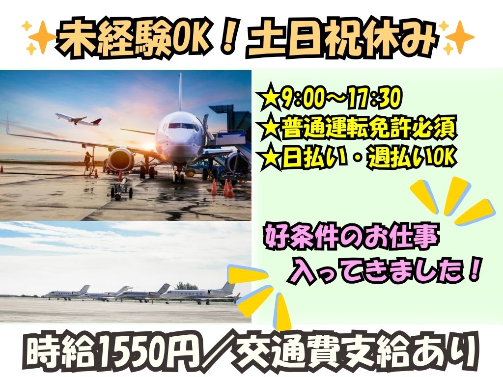 職種 手荷物仕分け搬送業務 給与 【未経験者】 〈基本時給〉 時給1,450円+交通費15,000円/月 〈22時~翌5時〉 時給1,813円+交通費15,000円/月 【経験者】 〈基本時給〉 時給1,550円+交通費15,000円/月 〈22時~翌5時〉 時給1,938円+交通費15,000円/月 ※スキル習得後、未経験→経験者へ時給チェンジ。 最短でも3ヶ月はかかります。 勤務地 - エリア